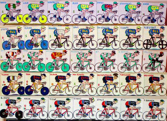 Tim Krabbé (author of "The Rider") has been kind enough to send me a text he wrote back in 1987 for Elsevier Weekblad. The text is called TOURS and recalls the memories of some adults who used to play cycling games in their childhood. Some of them played their own board games (like Tim Krabbé himself, see "The Rider" game), others played dexterity games. Since the text is in Dutch (and although online translators do wonders these days), it will take a while for me to post it here :-(