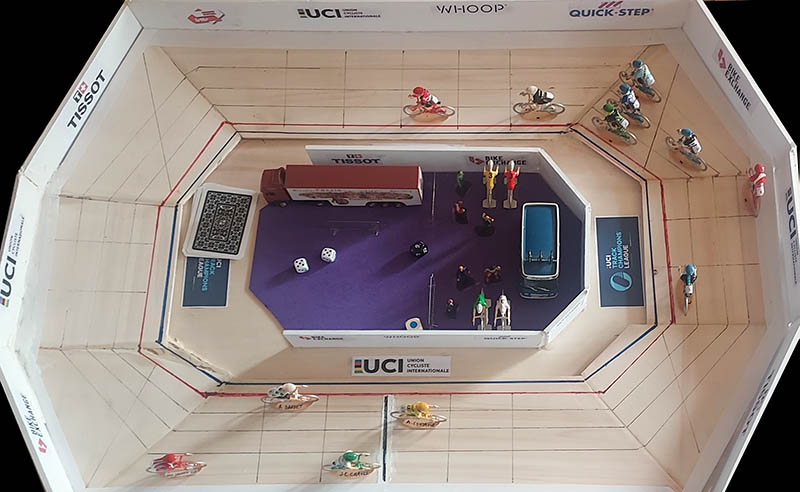 Non-velodrome-shaped board by Dale Addy (picture taken from BoardGameGeek)