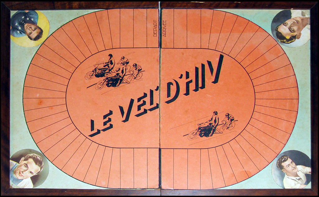 This game was created around 1950 by Robert Bidault, from Bayeux (France). Unfortunately the rules have been lost. According to his son Franck, who sent me these pictures, the game must have been similar to Le Jeu du Veldiv. I would not be so sure. This track has 60 squares, while HB's game has just 48. Of course you can play with HB's rules on this board, but then you can play almost any (simple) rules on any board. In this case, we will probably never know.