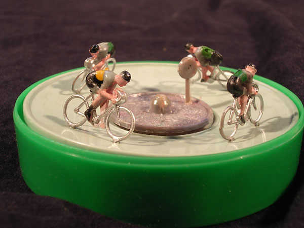 Cute Spanish toy. Quite small, actually (diameter: 11 cm). For those of you who don't understand Spanish, "apueste en las carreras" means "bet on the races". We are not supposed to teach children these things, are we?