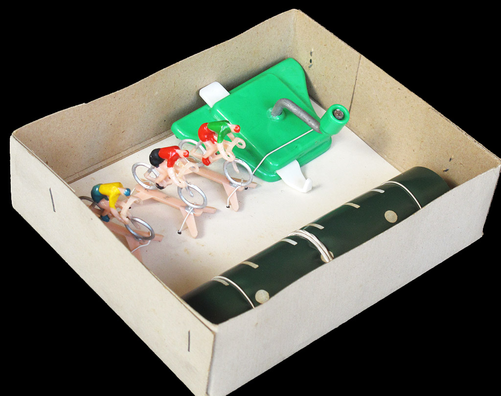 Nice Spanish mechanical cycling game that uses the "Escalado" system to move the riders along a plastic track. It was made in Zaragoza.