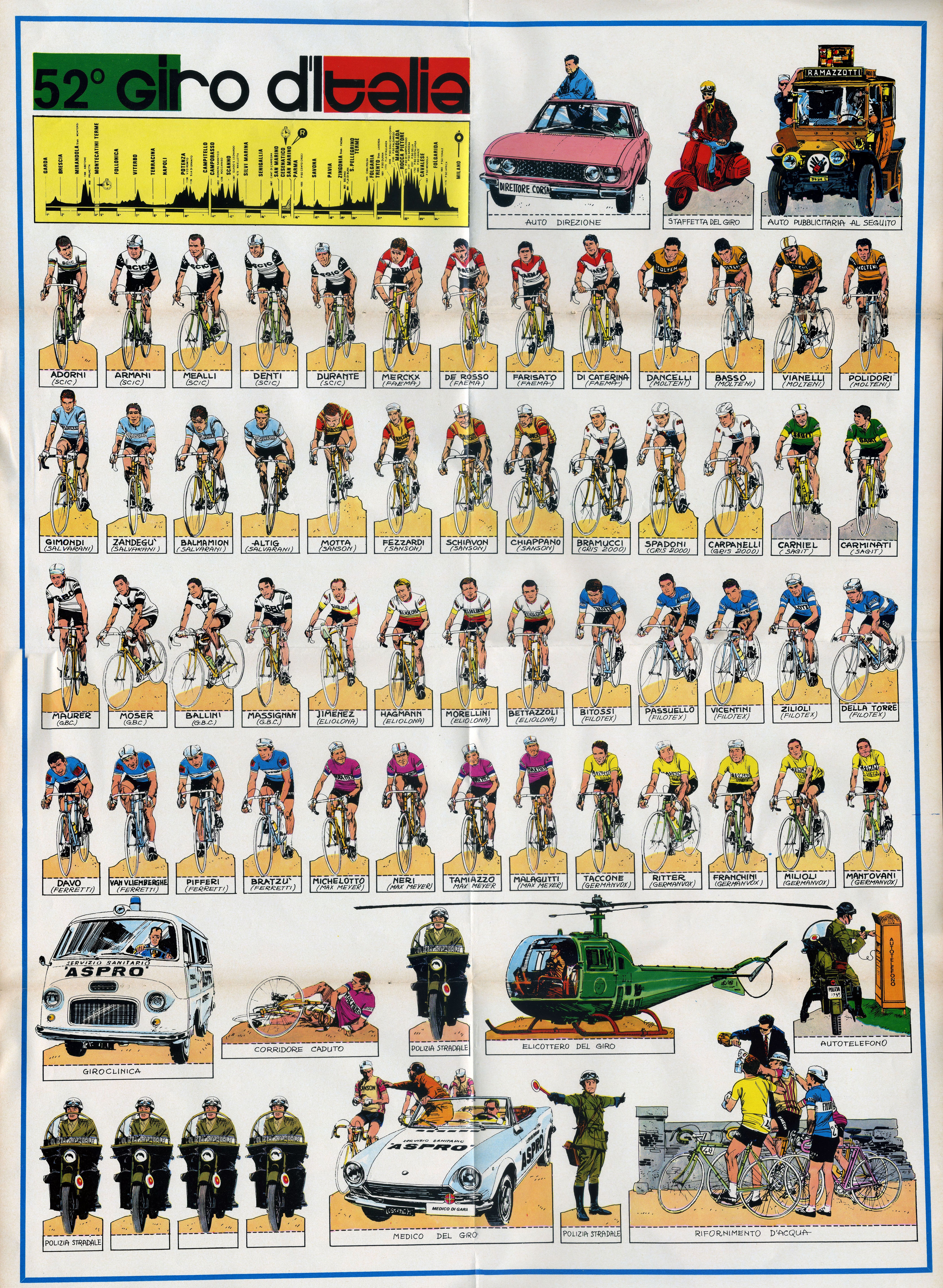 Click to download a high quality scan of the 1965 Giro de Italia riders (pdf, 3.7 MB).g) 1965, nš 35 (august 29th): Cyclists of the world championship. (2 sheets)