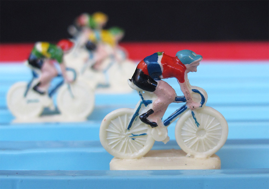 The game was also issued in France, by Polyjeux. It was called "Les Géants de la Route but, despite its unmistakably cycling-related name, it also included cars and horses. (Thanks, Marc, for the clarification).