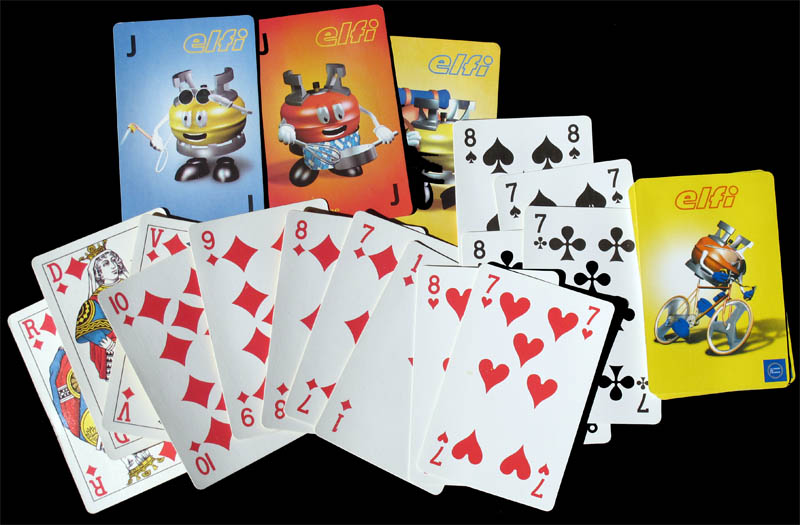 Promotional card deck for Elfi. As you can see below, jokers are made specially for this game. It was given as a freebie by the Tour de France caravan.