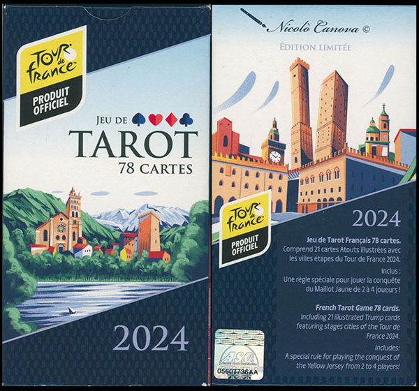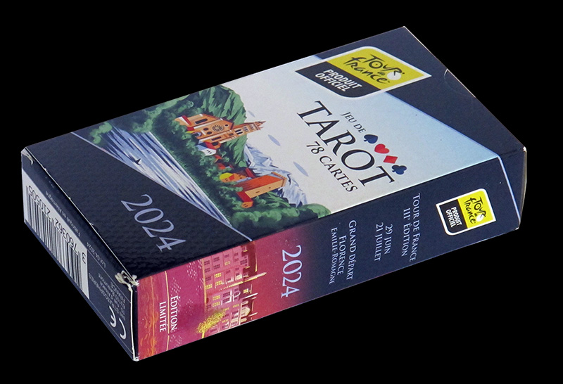This 78-card tarot deck is a special edition by Studio Stratosphères (creators of Velonimo) to commemorate the 2024 edition of the Tour de France. The 21 numbered trump cards represent the 21 stages of the race. It is a finely illustrated collector's item, which I doubt will ever be reprinted, and that you should therefore hurry to get while it is available if you are interested.
