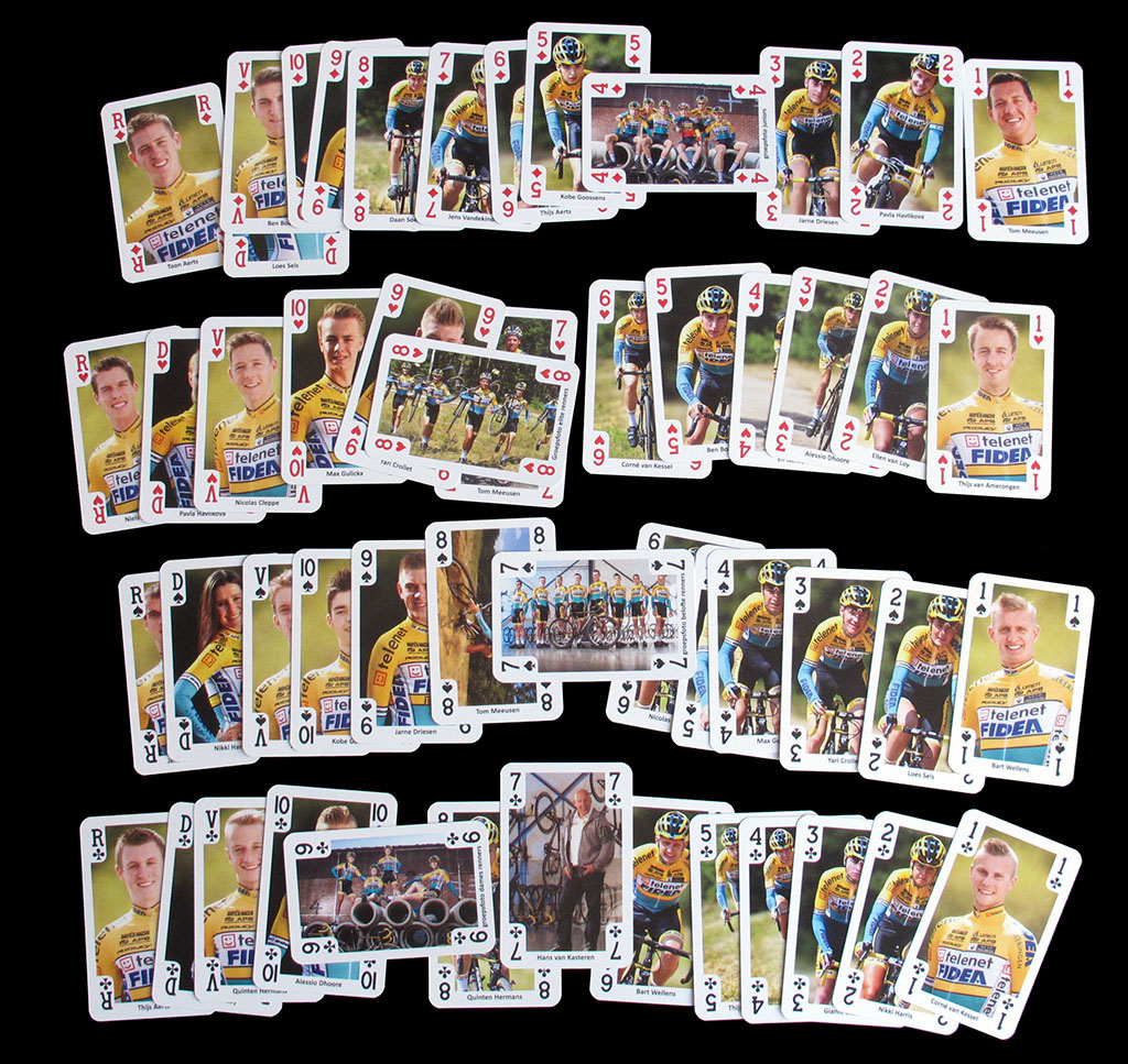 This is a promotional deck for Telenet-Fidea, a Belgium cycling team which focuses predominantly on the cyclo-cross season. The name of the team has changed slightly over the years. The last couple of seasons it was Telenet-Fidea Lions, but at the time of writing (season 2019-2020) it is Telenet Baloise Lions, after Baloise acquired Fidea last summer (we are talking about insurance companies here).