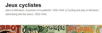 ![]() Cycling sport database, in French. Membership is not free, but there is a lot of free content. |