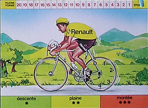 Of course, there are many other important features in a cycling game. The most obvious is the "Touch & Feel" factor: the name of the game will probably bear some relation to a cycling race, the board will represent a road or a velodrome, the counters are expected to be cyclist-shaped (unfortunately, too many games do not fulfill this expectation).