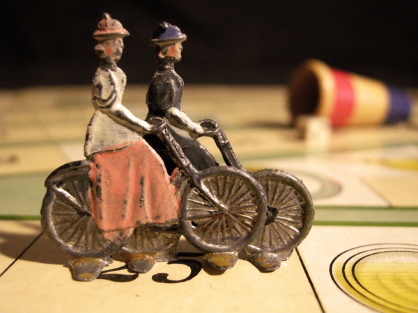 As I promised a few weeks ago, I resume the website's activity by adding a few games, some of which were brought by visitors to the exhibition in Figueres. To celebrate the end of the exhibition, I have a gift for you: a free print'n'play edition of the 1899 game Bikee (complete set of tiles and English rules). I hope you enjoy it.
