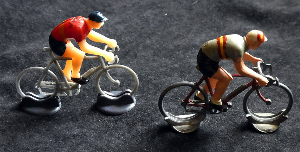 We will have a new cycling board games exhibition in the spring. It will be at the Museu del Joguet in Figueres, 15 years after our first exhibition there. This time we will exhibit games that are over 100 years old (only XIXth century and early XXth century games). You will be able to visit the exhibition betweenMarch 16th(update: March 9th) and April 23rd, 2023.The figurines section has been completely rewritten. That was a long-overdue promise. I have skipped the French figurines part (there is enough information about them both in print and online), and I have mostly concentrated on Spanish figurines, which are the ones that I know better (though I am not a specialist), and the ones with which I played when I was a kid. This rewriting is completed by offering Alex Poyer's article Les figurines cyclistes: entre identification, héroďsation et collection? (1890 ŕ nos jours) (previously published in Sciences Sociales et Sport, nş 16, juillet 2020) as a free download.