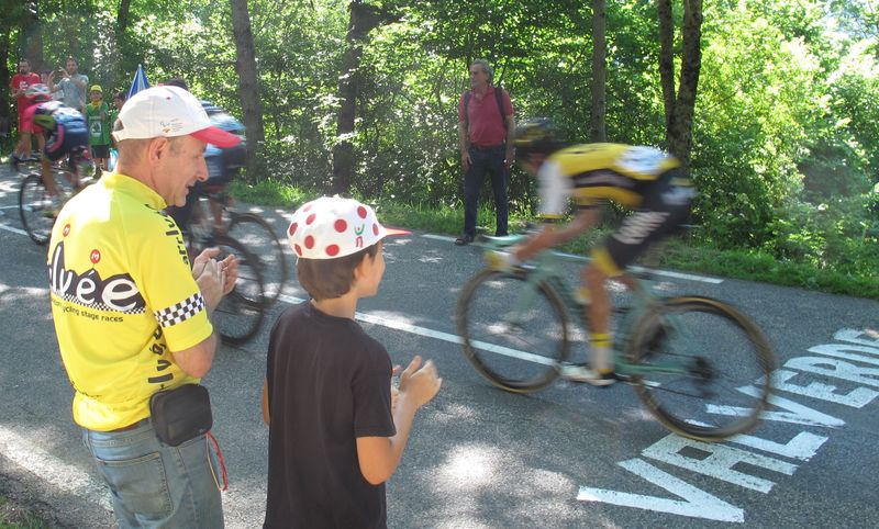 I went to see the Tour: Here I am in my Arrivée jersey on the Peyresourde climb with my nephew Nicolau.