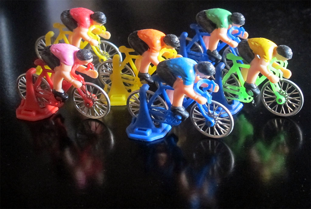 Anyway, Guisval riders are 52 mm long and were sold in blisters of two riders, who looked liked they were trying to pedal their way out of the blister.