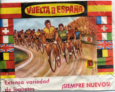 There were three Montaplex cycling bags (Tour, Giro and Vuelta), though there are many variations (different backs, price tags, etc...). The contents of the envelope, though, were some kind of a surprise. Of course they were cycling related, but you could find riders of different sizes, and maybe some supporting cars or spectators. The most frequent cyclists you could find in a Montaplex envelope were 2 cms long, and they came in various positions. The envelopes measured 80 x 105 mm.