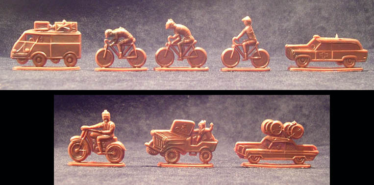 These are even rarer: the riders are slightly bigger, weels are solid, vehicles are nice (though flat and undersized)