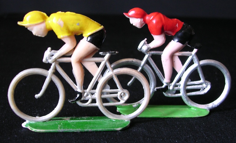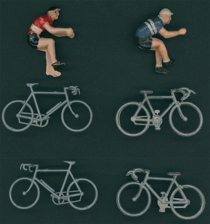 UPDATE 2025: Marc Radenac confirms that there were Roger plastic cyclists with metal bikes and detachable bases. He sends one (thanks!!!), the one on the right on the picture above. The Roger metal bicycle is somewhat bigger than the Spanish plastic one, and the Roger cyclist is somewhat sturdiest, but they are interchangeable if you feel like it.