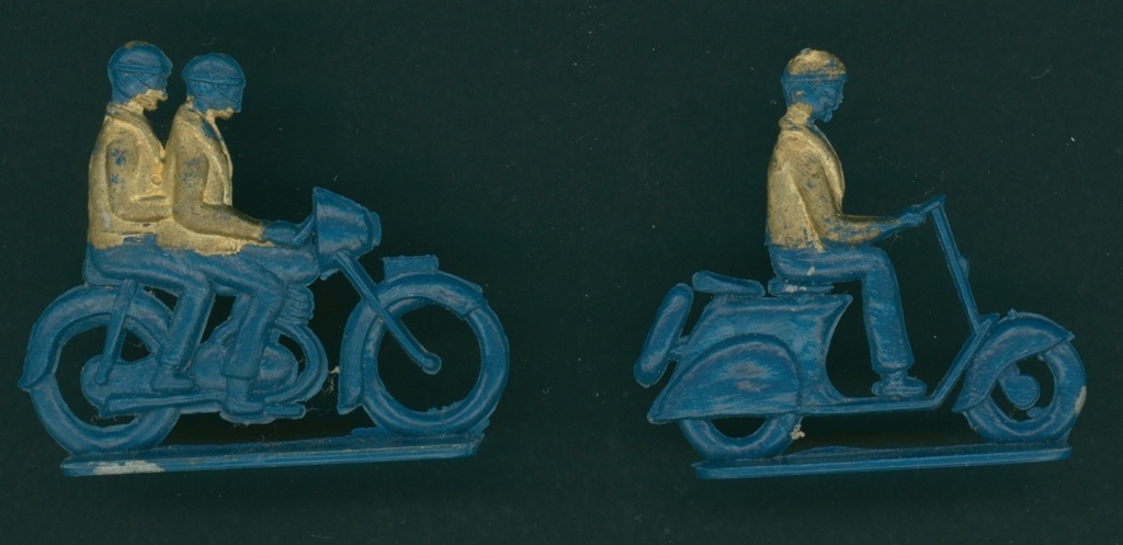 Another set of riders made in stiff plastic, probably in the 1960s. These are quite "flat", almost two-dimensional.