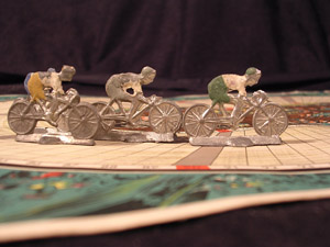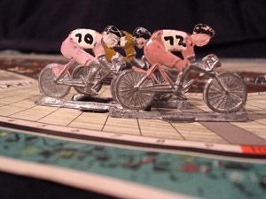 What is surprising is that the boxed version should be the expensive one, thus more elaborate, and it is not so. The riders that come independantly in the smaller boxes are, at least, better painted than the ones in the complete version of the game. Which makes me suspect that there must be more versions of this game around.