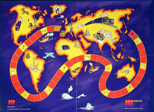 Promotional game with a vague cycling theme. May be made in Belgium since the only location reference is "Illustrated by Cenci - Belgium". However I'll list it under "multinational" until I have a better idea. The rules are in six languages: French, Spanish, English, German, Dutch and Italian (in this order).