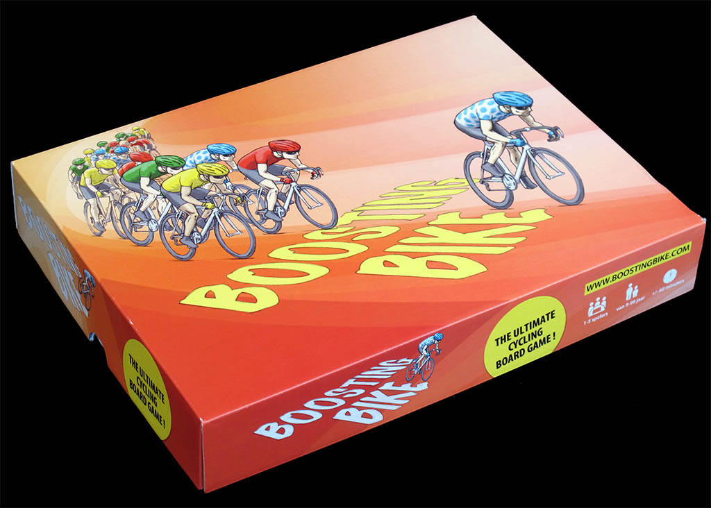 Boosting Bike is a game invented, developed and produced by Jos Noben, from Antwerp. Jos has spent many hours to get a peloton of cyclists moving in a realistic way around the board, to have a "peloton feel" in the way riders move. And I think he has succeeded pretty well. Also, as a result of his efforts, he has developed some unusual game mechanics. In these days when new games that are too similar to one another, it is a blow of fresh air to find a game that explores different paths.