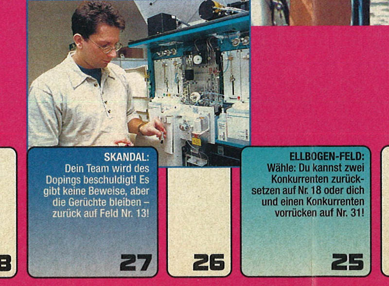 Here is a (major) setback on square 27: A doping scandal in your team! Ouch. The Festina affair was very recent at the time.