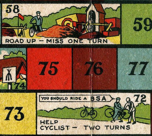 Sometime ago I received a present from David Wells, from TheOldToyShop.com. It was a small box, the size of a matchbox, with a carboard counter with a cyclist printed on it, which he had found in a flea market in England (thanks, again, David!). As you can see in the pěcture below the box has the inscription "Bicycle Race" on the top.