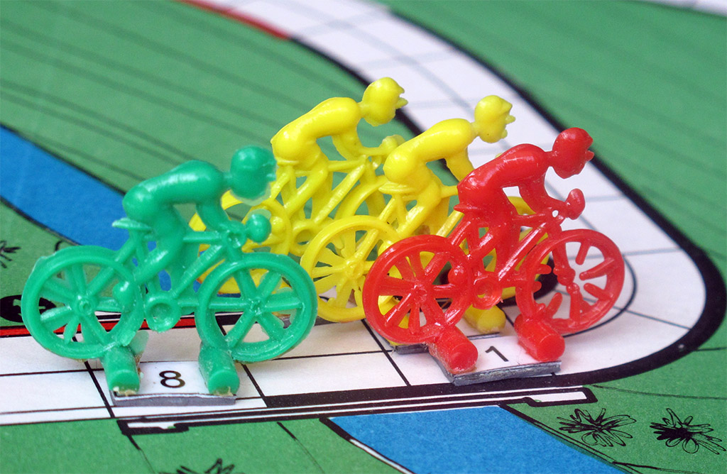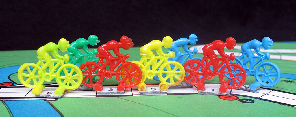 The other abilities do not decrease during the race, and are added to the value thrown with the dice depending of the type of terrain. Some extra points are also added to the throw if the rider is protected from the wind (behind another rider). But this total sum is not the value by which the riders move, since different types of terrain need different values to move throuh them.