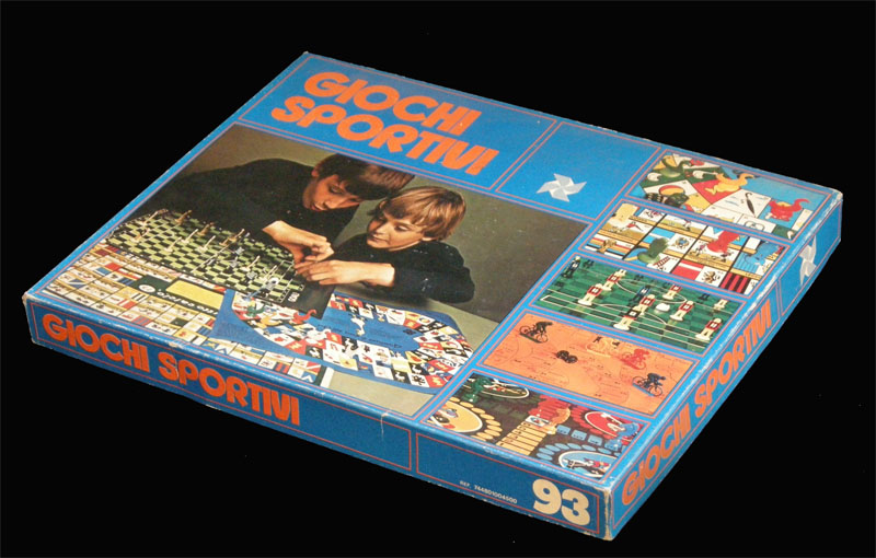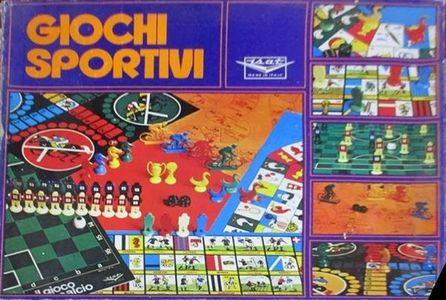 Unbranded (except for the logo) Italian combination box wich features 5 games: Game Of Goose (with no particular sports theme), horse-themed Ludo, football-themed game of goose called "Tutto Calcio", another football game called "Goal!", and a cycling-themed game of goose called "Gioco del Giro d'Italia Ciclistico".