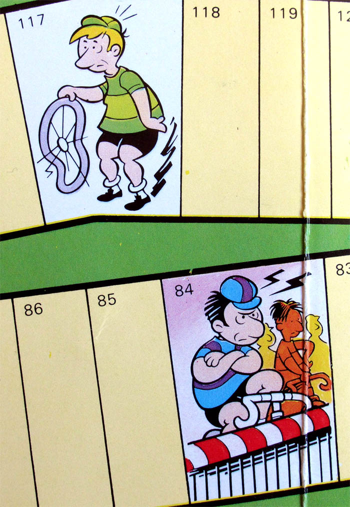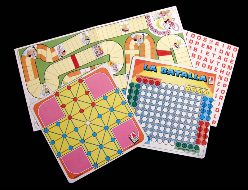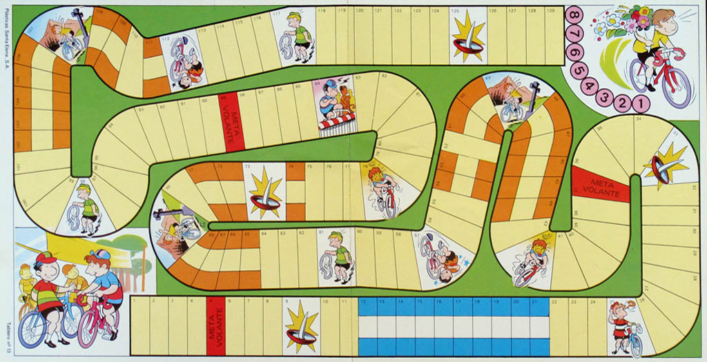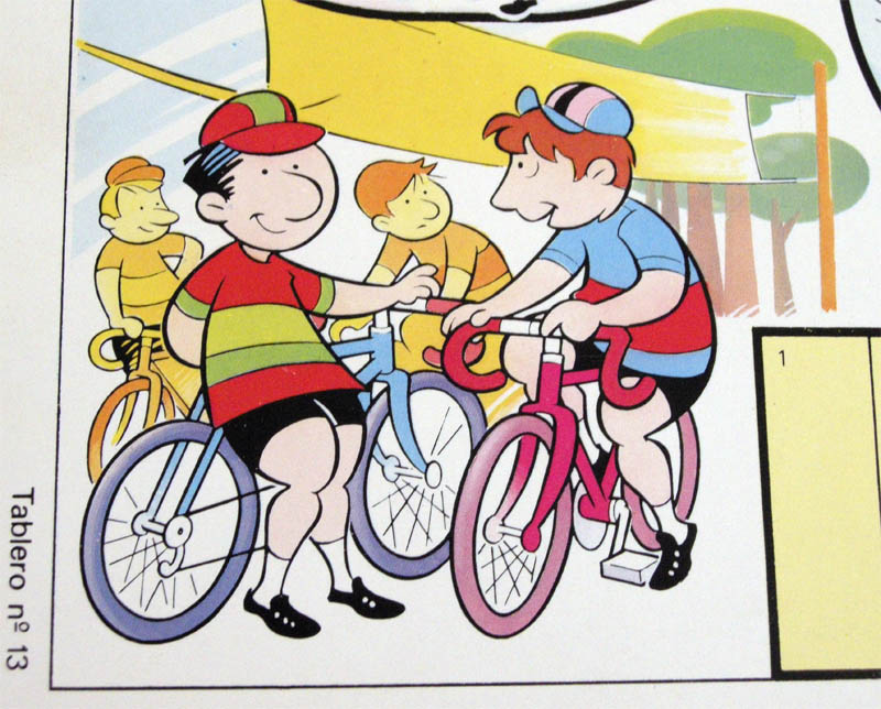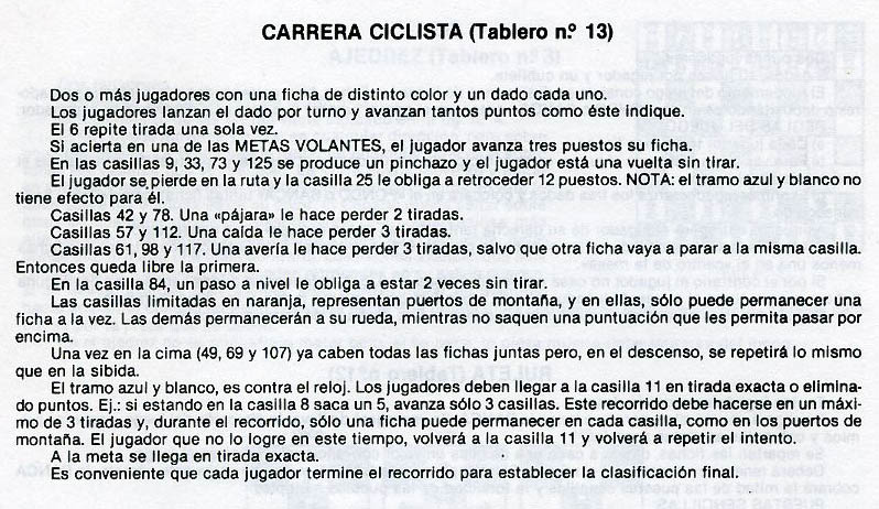 Games' compilation boxes have always been popular in Spain, and they occasionally cycling games. Here is another example. Santa Elena made 4 boxes, containing 15, 25, 35 and 45 games. This cycling game appears in all except the smaller box.