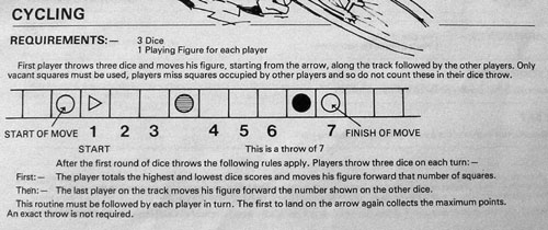 English 70s game, based on a popular TV series. The rules work better than expected and make an interesting one-lap race, though it's a simple roll-and-move game with no strategy.