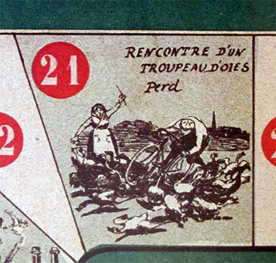 In 1894 there were geese on the French roads... or maybe it's that this is a game of goose.