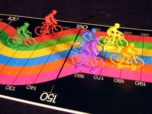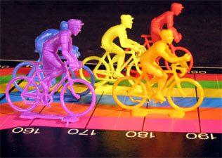 Generally, an uninspired cycling game is a copy of the game of goose. Not this one. We face here a shameless copy of "1000 bornes", with "puncture" instead of "no gas". Of course, I am not going to say "1000 bornes" is a bad game. Not at all. It's just that I stopped loving it when I was eleven.