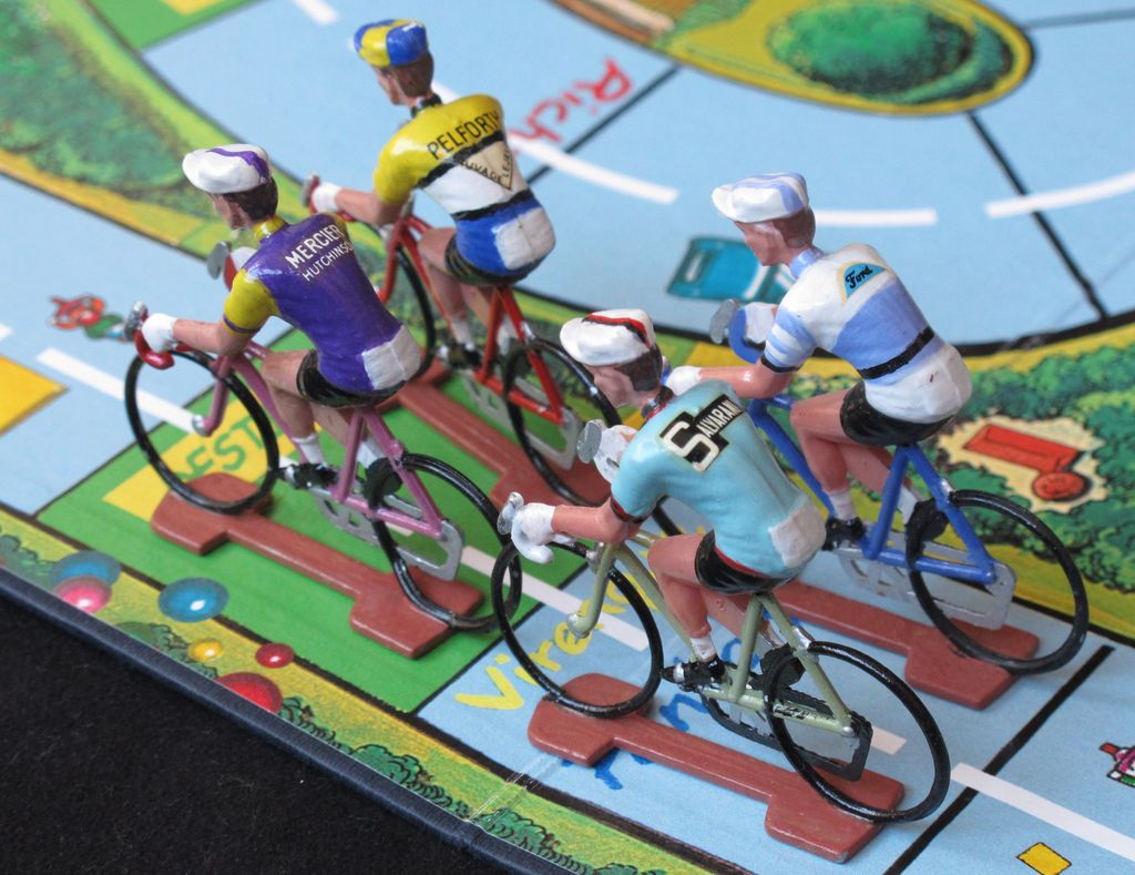 The game includes 15 white-jersey cofalu riders and five set of maillot stickers belonging to professional teams, different in each box. For more realism you can buy extra sets at their website.