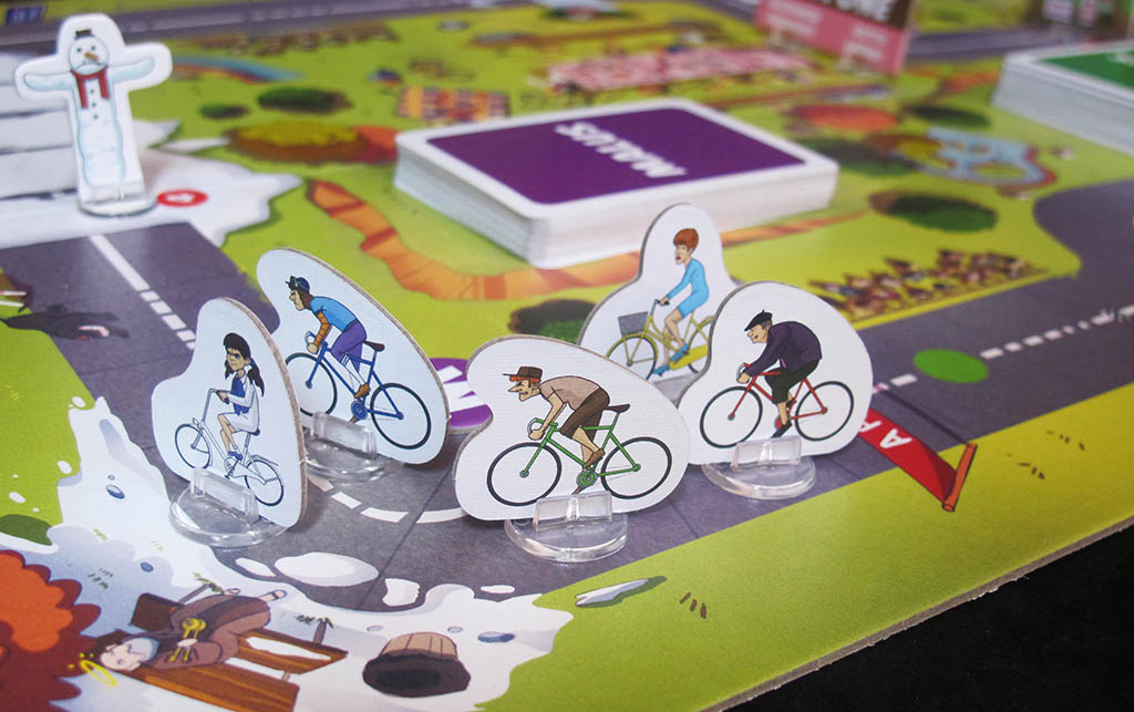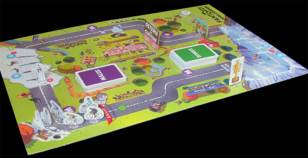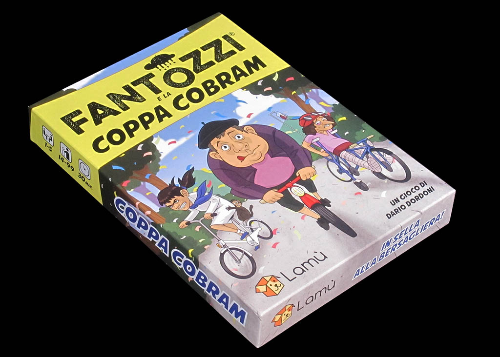 Quoting from the publisher: "COPPA COBRAM is a crazy cycling race in which players will have to do all kinds of mischief to win. In the course there are several obstacles to overcome, a deck of bonus cards to damage the opponents or benefit themselves and finally a deck of malus cards that represents penalties that players will have to fish at certain points of the course".