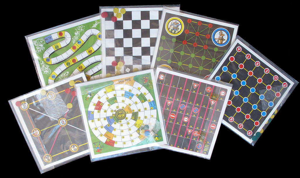 This game (24 x 24 cms) is part of a collection of cheap games that were sold independently in Spanish bazaars. The game consists of a small (24 x 24 cms) board made of light cardboard, a set of cheapo counters and one die.