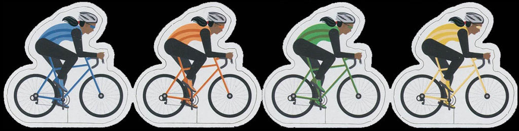 Apart from the board, we find four ready-to-assemble cyclists, a special die, and 36 mysterious couloured counters.