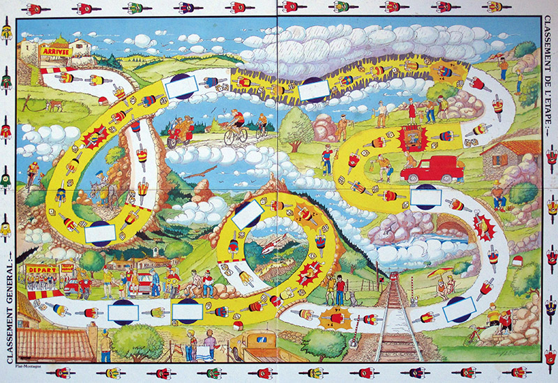 However, the game is very simple, Players manage teams of two riders. They roll two dice for each rider (except on certain parts of the track, such as climbs, where riders move with only one die) and move the riders accordingly.