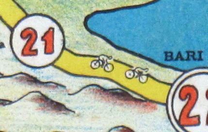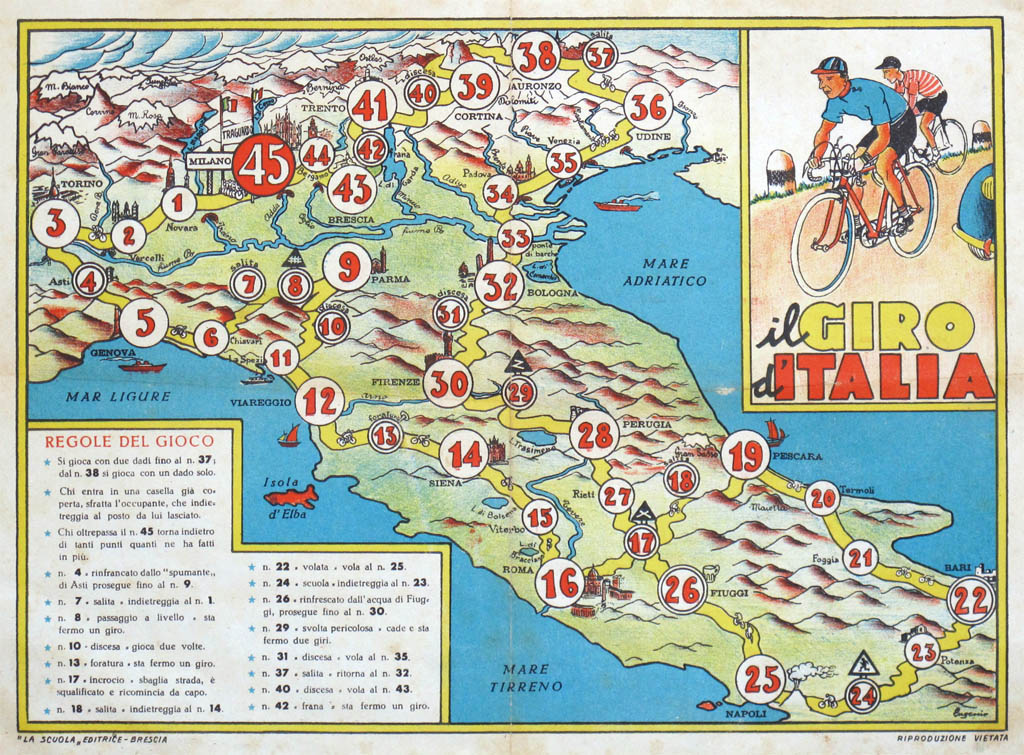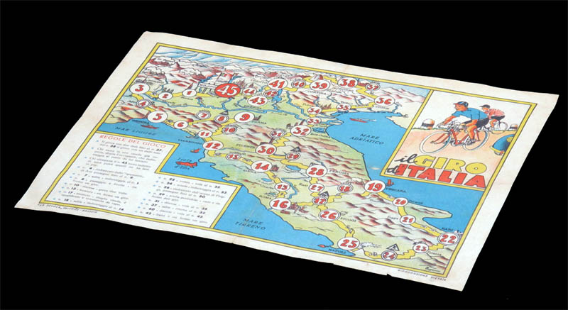 The game is not dated but it follows the stages of the 1948 Giro d'Italia (which was eventually won by Fiorenzo Magni with just 11 seconds advantage over Ezio Cecchi, the smallest gap between first and second classified in the history of the Giro).
