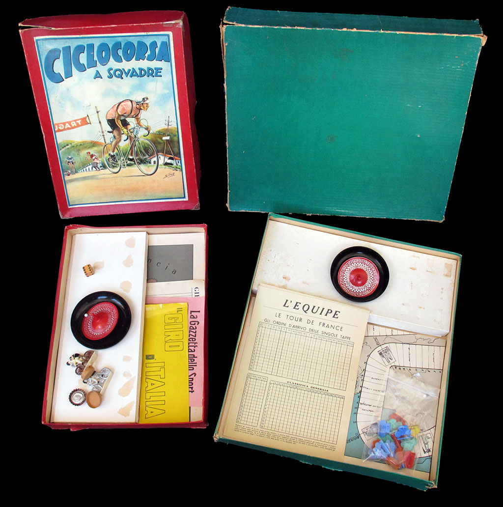 This game was a mystery to me when I first received it. I only had the green box on the right of the picture, and I knew it was incomplete. The problem is that I just received the box on the left of the picture, with a fantastic "Ciclocorsa a Squadra" artwork, and the mystery remains.