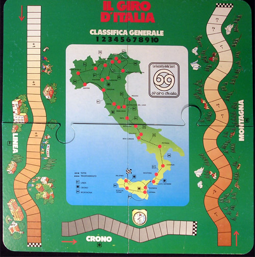 This game represents a complete Giro d'Italia. I haven't played it yet, but the game could be a half-decent one (allegedly, the rules have been written with the collaboration of Francesco Moser).
