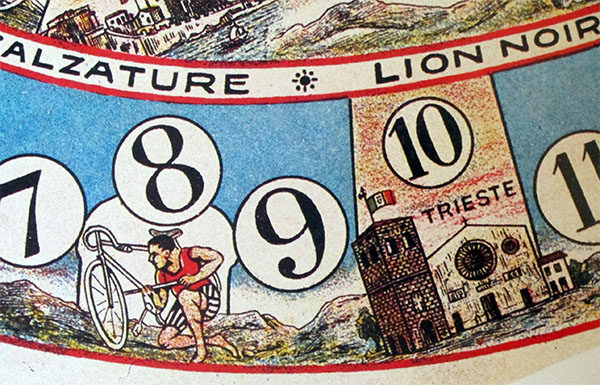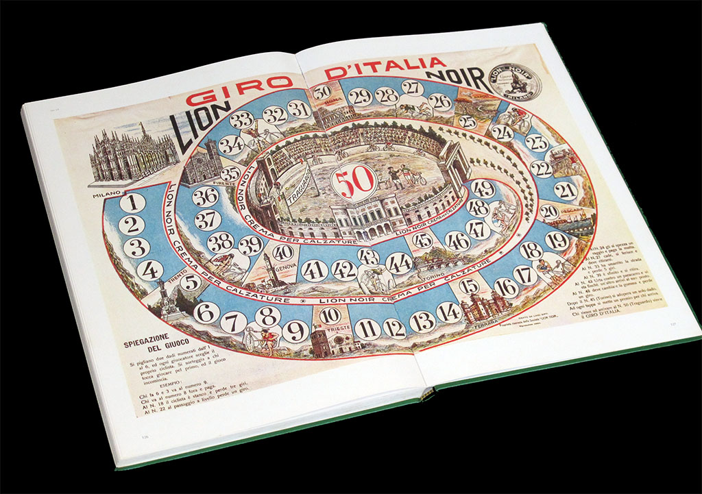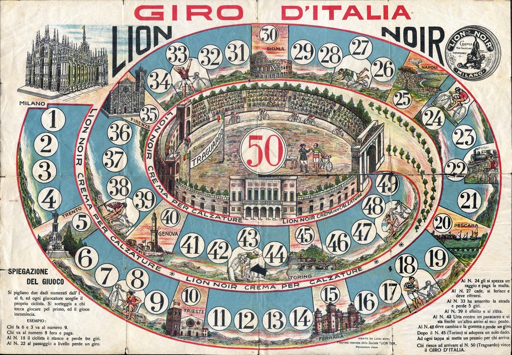 This is an Italian game from 1919, so far the oldest Italian game in my collection. Although it is a simple game of goose, it features the ten stages of the 1919 Giro d'Italia, which started and ended in Milano.