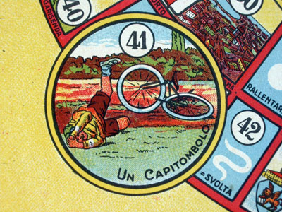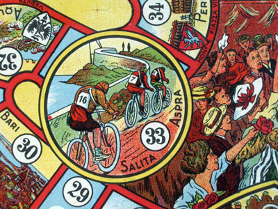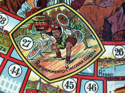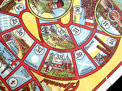 An Italian game of goose from the Fascist era. It mesures 49 x 34 cms.