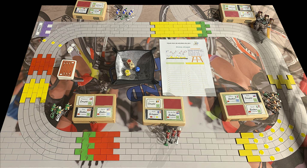 As said above, this game can represent one-day races (estimated playing time according to the game's website: 45 minutes) or stage races. To be able to play the latter, a simple time-keeping rule is provided, as well as a time trial rule which, as the rules of the game themselves confess, is not strategically interesting, since the game is about the interaction between riders, and is just there for the sake of completeness.