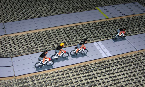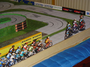 Ludo Nauws keeps doing nice work. These is a new set of riders using Fonderie Roger's small figurines, and hardboard (4mm thick) track parts for a Tour de Belgium starting in September 2009. Learn more about this project here.
