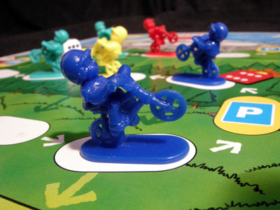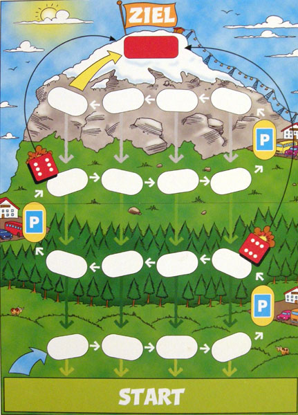 Simba is an Italian maker, but my copy is definetely German. This quite unusual game represents a mountain bike race, in which teams of four riders struggle to reach the top.