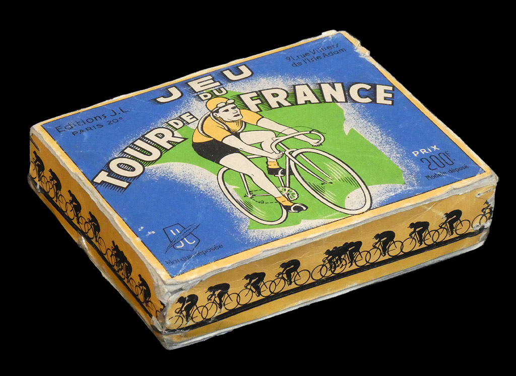 Since Mille Bornes was not created (by Edmond Dujardin) until 1954, it is safe to infer that this Tour de France game was made before that year. What is not so sure is how long before.  The unfortunate demise a few months ago of my friend Pierre Bertin leaves me without the possibiliyt to ask not only one of the biggest experts in French board games, but also a big fan and collector of Mille Bornes/Touring-type games, so I am dating the game according to my intuition.