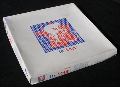 Unusual game from the late Geert Lagrou's collection. One wonders if a plastic board is the best solution play a cycling game. The riders are moved by cards (instead of dice), as in games like L'Échapée (Der Ausreisser) or Tafel Tour, which is always a feature I like. In fact, this game looks like a Tafel Tour adaptation, as far as I can tell.