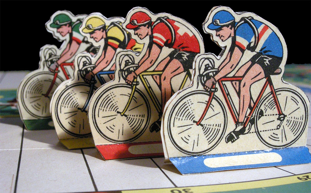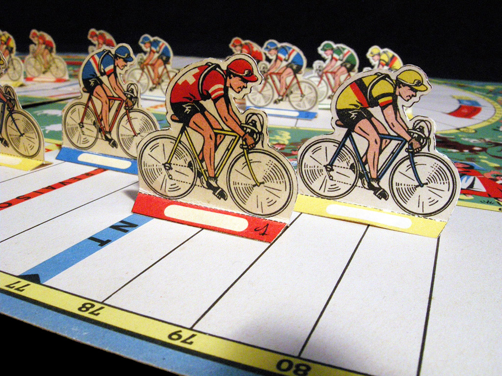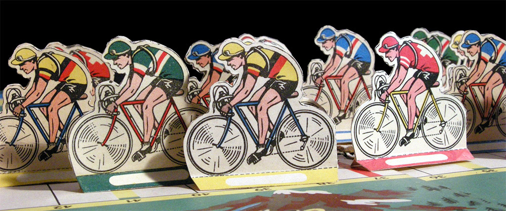 By the way, the last two sentences of the rules are quite contradictory: the winner of the race is the first to cross the line AND (???) the team with less points adding the final positions of all the riders. Unless you play with teams of one cyclist, you can chose what rule you prefer (my advice is to use the team rule), or even use both and possibly have two winners.