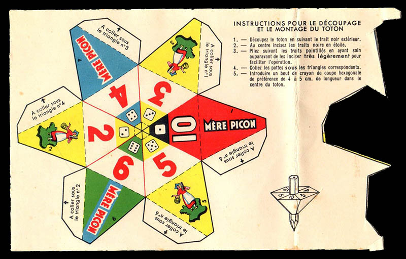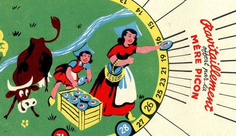 This fantastic game was a promotion for the "Mère Picon" cheese, made by Fromageries Picon, which were based in St Felix (Haute Savoie) and are now part of the Bel Group. Each cheese box included a cut-up rider and a bonus. If you sent 20 of these bonuses, you received the board. Therefore, this game did not have a box , but it is still fantastic. It made it to my favourite games list as soon as I had it in my hands.