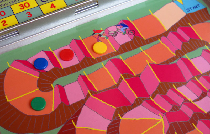 This is the Quikky Games BMX game. There are two editions of the game, named "SLIM" and "POKKET". The rules for the smaller "POKKET" game are a simplified version of the already simple rules for the bigger "SLIM" game.