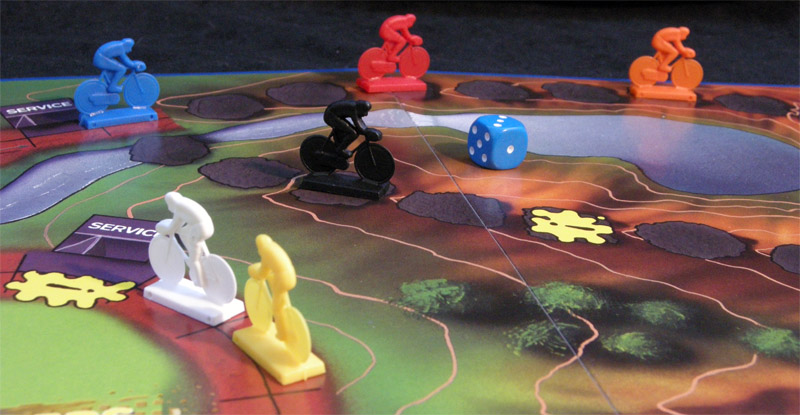 Although we have a die in the game, it is not used to control the movement of the riders. Instead, players select a gear in the play card and move accordingly to this gear. Once on the move, players may select up or down two gears without penalty, but greater changes incur "Brake Wear" or "Energy Usage".